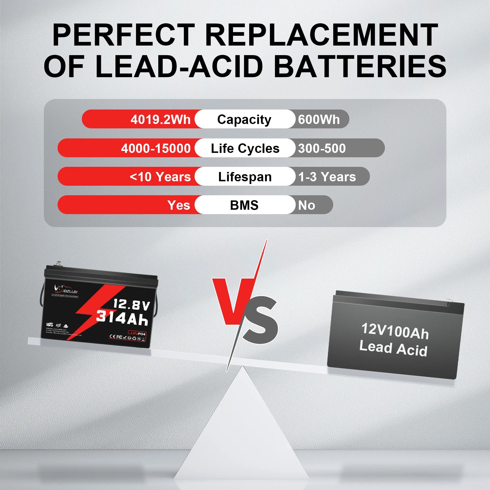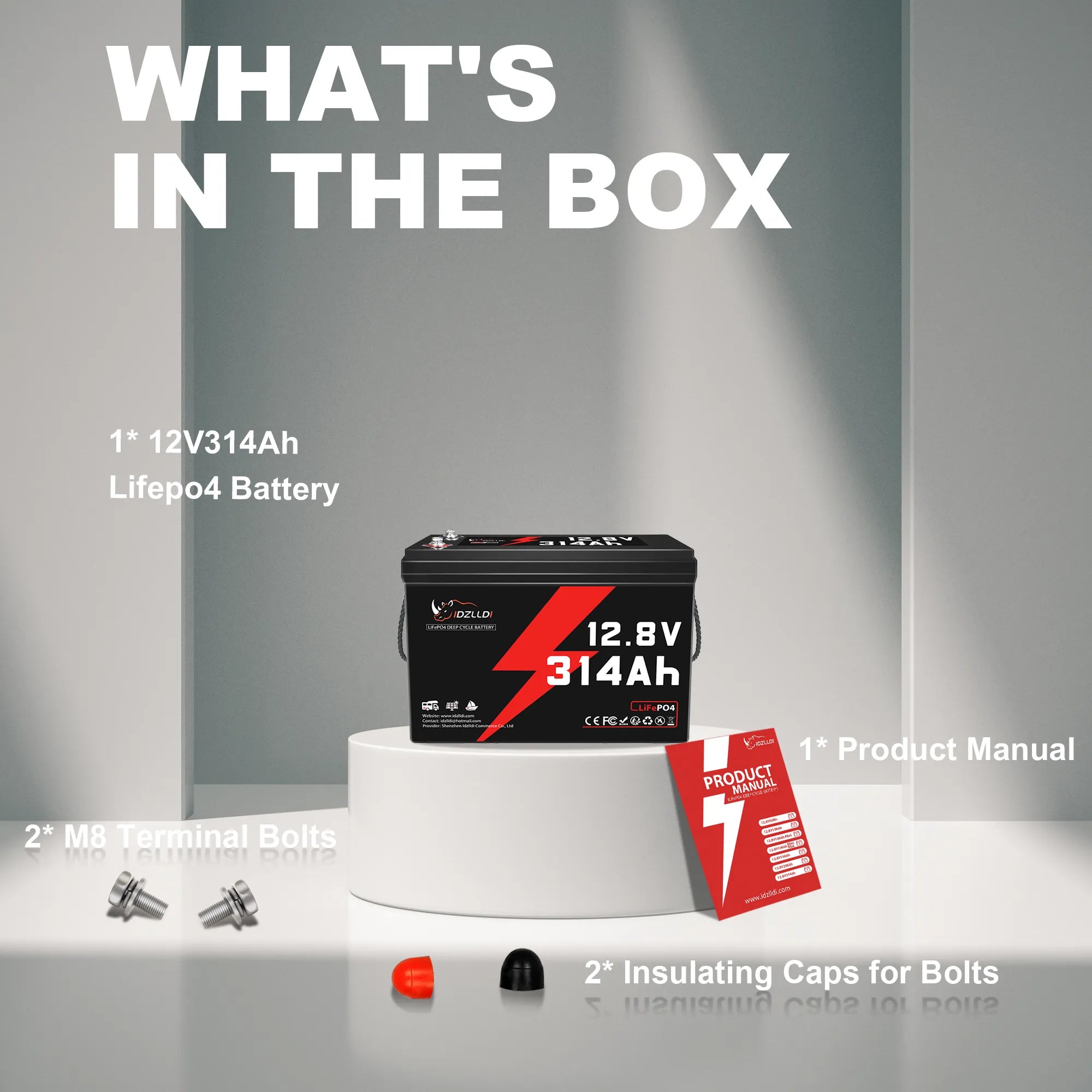 Idzlldi 12V 314Ah Deep Cycle LiFePO4 Battery w/ Low-Temperature Protection